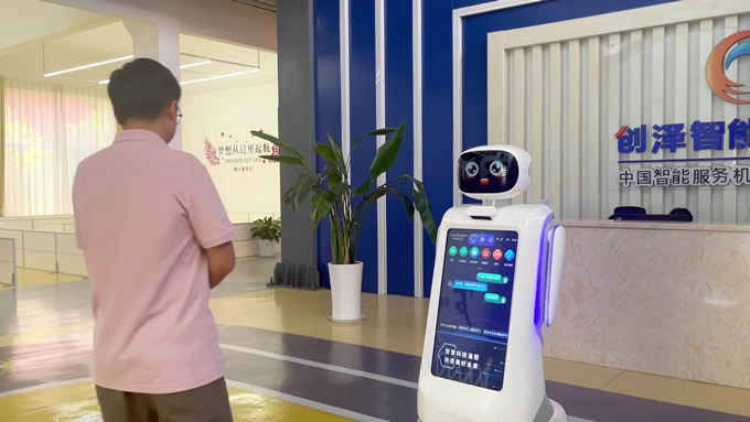 創澤智能消毒機器人和智能大屏機器人等多款機器人亮相蘭洽會,彰顯了創澤AI技術實力與場景深耕能力