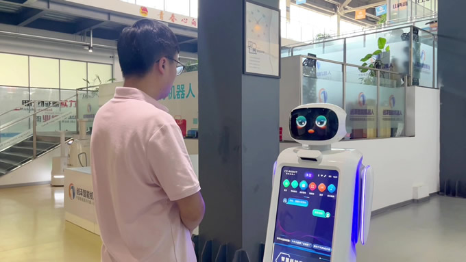 市云遠設雙語大屏機器人