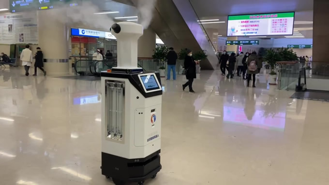 消毒機器人什么場合作用大,大型公共場所使用消毒機器人進行消毒