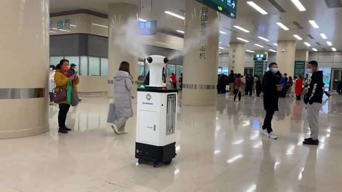 消毒機器人什么場合作用大,大型公共場所使用消毒機器人進行消毒