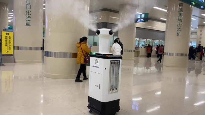 消毒機器人什么場合作用大,大型公共場所使用消毒機器人進行消毒