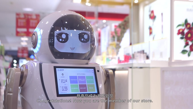 會(huì)說(shuō)英文的迎賓機(jī)器人