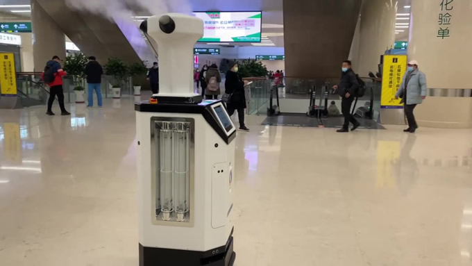 消毒機器人什么場合作用大,大型公共場所使用消毒機器人進行消毒