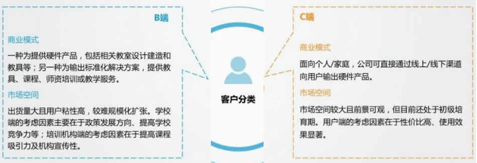 教育機器人的市場可分為TOB和TOC。其中在B端的主要客戶為學校和培訓機構,主要提供機器人的產(chǎn)品、課程、培訓等,由學校老師或機構老師帶L學生學習;在C端則是主要針對家庭場景陪伴和方便孩子學習。