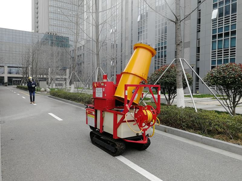 蘇州陽澄湖科創園出現了兩款網紅機器人,在工作人員的遠程控制中,它們緩緩行駛,或仰面朝向建筑物,將消毒液噴灑到30米G的建筑上,或噴灑出一個300度左右的移動扇形消毒幕墻。這是蘇州博田自動化公司聯合農業大學、蘇州大學科研團隊,自主研發的“智能G效環衛消毒機器人”。他們在前期技術基礎上緊急攻關,將用于農林行業的農藥噴灑機器人進行技術迭代,采用壓流和風力的二次霧化,可以遠程均勻噴灑消毒液,助力疫情防控。