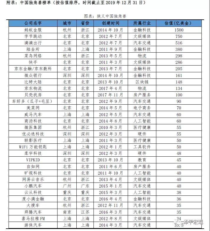2019年中國獨角獸企業(yè)數(shù)量達到218家,總估值7964億美元,平均估值36.5億美元,超過100億美元(含)的超級獨角獸企業(yè)共7家