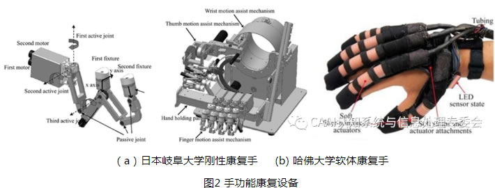 腦卒中、意外事故和老齡化等造成的腦損傷患者數(shù)量大幅度增加,由腦損傷引起的手運動功能障礙直接影響患者的生活質(zhì)量。傳統(tǒng)的治療手段主要依靠康復(fù)醫(yī)師輔助患者關(guān)節(jié)活動度和肌力訓(xùn)練,但其訓(xùn)練效果受醫(yī)生經(jīng)驗和業(yè)務(wù)水平及訓(xùn)練時間等因素的影響。因此有很多研究者研發(fā)了相關(guān)的康復(fù)訓(xùn)練設(shè)備輔助患者訓(xùn)練以重新獲取肢體的運動技能[1]。