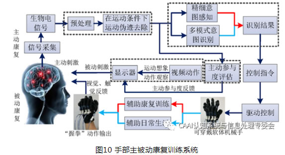 根據(jù)手部主被動訓(xùn)練的康復(fù)需求,基于課題組在運動意圖識別、腦機(jī)接口、軟體手等方面的研究基礎(chǔ),設(shè)計了一種可康復(fù)訓(xùn)練可日常生活輔助的穿戴式主被動康復(fù)訓(xùn)練系統(tǒng),系統(tǒng)的主要功能包括:多范式刺激、精細(xì)意圖感知、多模式意圖識別等[14]。
