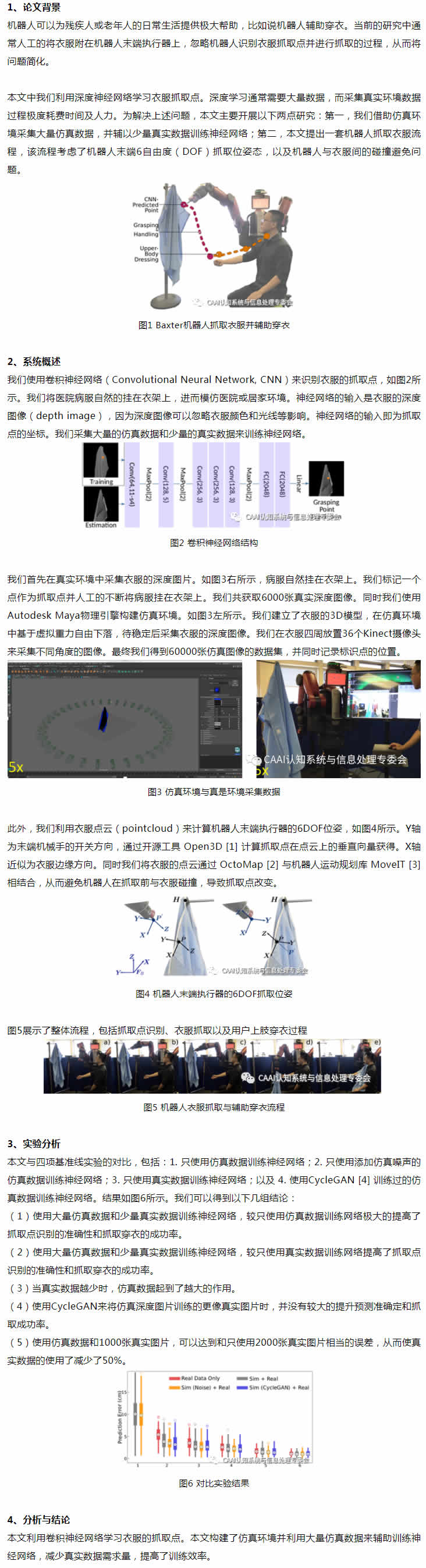 機(jī)器人可以為殘疾人或老年人的日常生活提供J大幫助,比如說機(jī)器人輔助穿衣。當(dāng)前的研究中通常人工的將衣服附在機(jī)器人末端執(zhí)行器上,忽略機(jī)器人識別衣服抓取點(diǎn)并進(jìn)行抓取的過程,從而將問題簡化。