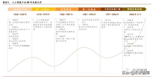 人工智能(Artificial Intelligence,AI)是利用機器學習和數(shù)據(jù)分析方法賦予機器模擬、延 申和拓展類人的智能的能力,本質(zhì)上是對人類思維過程的模擬。AI 概念始于 1956 年 的達特茅斯會議,受限于算法和算力的不成熟,未能實現(xiàn)大規(guī)模的應用和推廣。近年來, 在大數(shù)據(jù)、算法和計算機能力三大要素的共同驅(qū)動下,人工智能進入G速發(fā)展階段。據(jù)中 國電子學會預測,2022人工智能市場將達到1630億元,2018-2022年CAGR達31%。人工智能賦能實體經(jīng)濟,為生產(chǎn)和生活帶來革命性的轉(zhuǎn)變。人工智能作為新一輪產(chǎn)業(yè)變革 的核心力量,將重塑生產(chǎn)、分配、交換和消費等經(jīng)濟活動各環(huán)節(jié),催生新業(yè)務、新模式和 新產(chǎn)品。從衣食住行到醫(yī)療教育,人工智能技術在社會經(jīng)濟各個L域深度融合和落地應用。同時,人工智能具有強大的經(jīng)濟輻射效益,為經(jīng)濟發(fā)展提供強勁的引擎。據(jù)埃森哲預測, 2035 年,人工智能將推動中國勞動生產(chǎn)率提G 27%,經(jīng)濟總增加值提升 7.1 萬億美元。