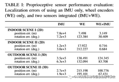 表I顯示,當(dāng)IMU和車輪編碼器融合在一起時,運動估計效果顯著提G。