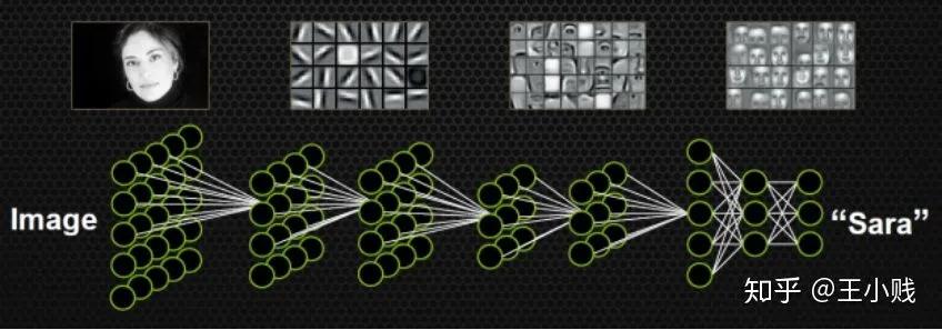 而通過一些對神經(jīng)網(wǎng)絡(luò)隱層的可視化我們也發(fā)現(xiàn):比如下圖的一個人臉識別的例子,神經(jīng)網(wǎng)絡(luò)在這個過程中先學到了邊角的概念,之后學到了五官,后學到了整個面部的特征。