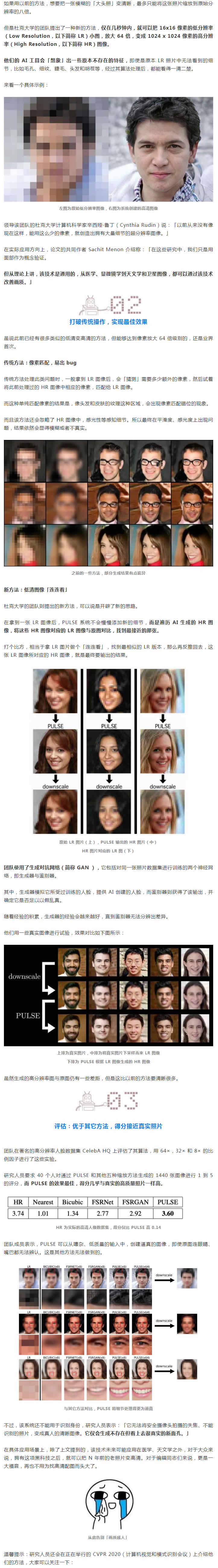 杜克大學(xué)的研究人員提出了一種 AI 算法,稱之為 PULSE(Photo Upsampling via Latent Space Exploration,通過(guò)潛在空間探索的照片上采樣)。