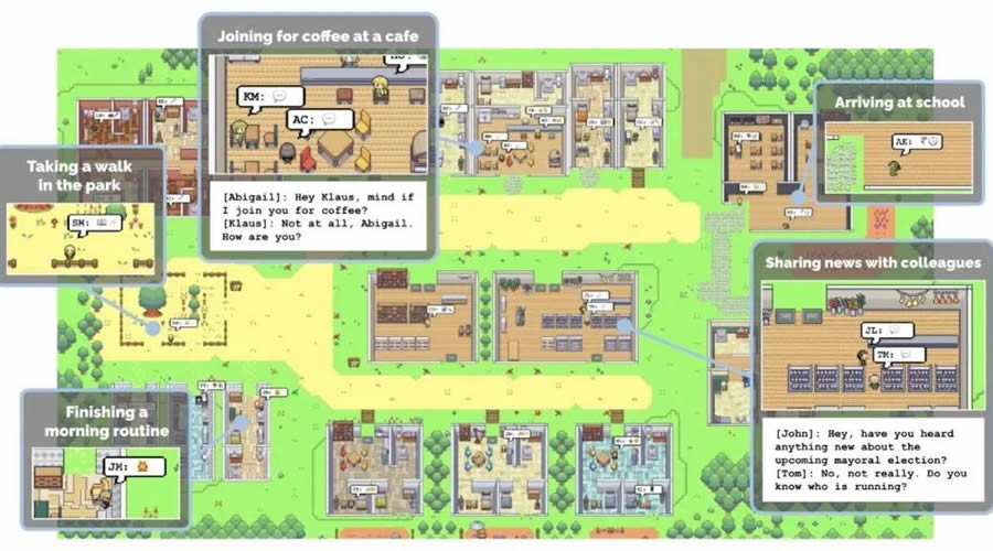 論文介紹了一種新的計算機模擬軟件,稱為“生成代理”,可以模擬逼真的人類行為。這些生成代理可以像真實人一樣進行日常生活行為,例如起床做早餐、去上班、形成意見、互相注意到并開始對話等。為了實現生成代理,論文提出了一種架構,該架構基于大型語言模型,可以存儲生成代理的自然語言體驗記錄,并將這些記憶隨著時間的推移合成為更G層次的反思,然后動態檢索這些反思以規劃行為。