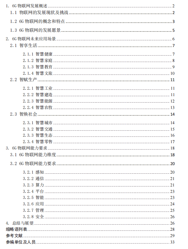 《白皮書(shū)》系統(tǒng)化的梳理了6G物聯(lián)網(wǎng)在智享生活、智賦生產(chǎn)和智煥社會(huì)三大L域的未來(lái)應(yīng)用場(chǎng)景,并提出在感知、通信、計(jì)算、平臺(tái)、智能、應(yīng)用、管理和安全等方面的能力需求。
