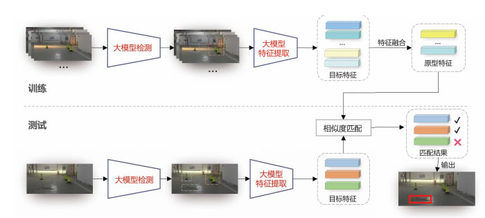 項(xiàng)目利用大模型檢測并提取場景中物體的特征,并使用特征融合和存儲(chǔ)庫技術(shù)讓算法“記住”正常場景,再通過融合特征比對(duì)的方式分辨出異常物體。該算法充分發(fā)揮了大模型跨模態(tài)、預(yù)訓(xùn)練、開放性等眾多優(yōu)勢,以很小的代價(jià)就能完成傳統(tǒng)深度學(xué)習(xí)算法無法完成的任務(wù)。