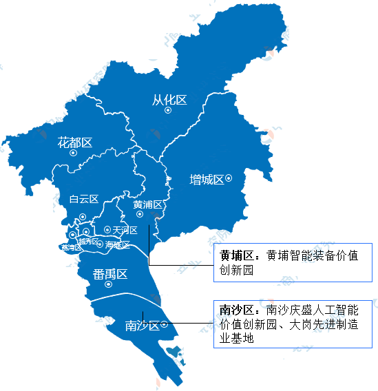 廣州市智能裝備與機器人重點平臺主要包括:黃埔智能裝備價值創新園、南沙慶盛人工智能價值創新園、大崗先進制造業基地等。