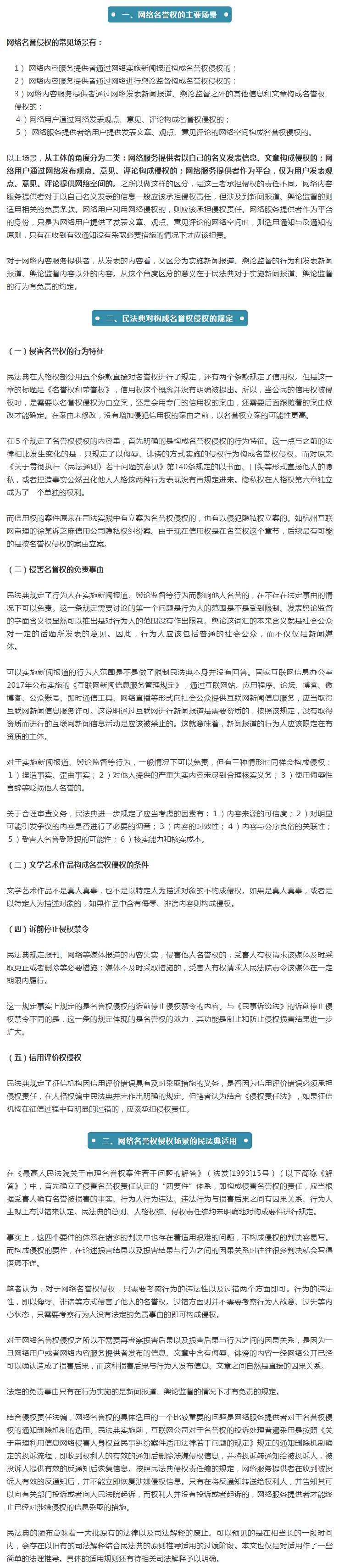 名譽權侵權的條款雖然只有幾條內容,而且明確提到網絡字樣的只有一條。但網絡名譽侵權的適用則不僅僅局限于這幾條。