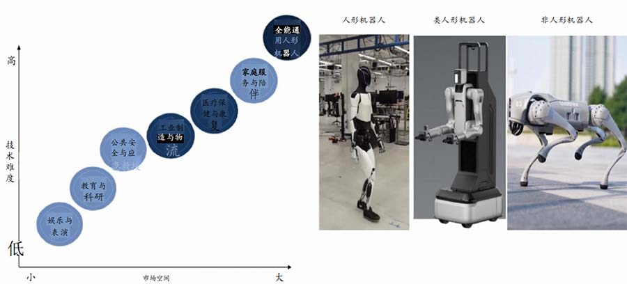 國內(nèi)機(jī)器人大多瞄準(zhǔn)三類下游進(jìn)行布局,產(chǎn)品形態(tài)由非人形到類人形逐步拓展至雙足人形。人形機(jī)器人可