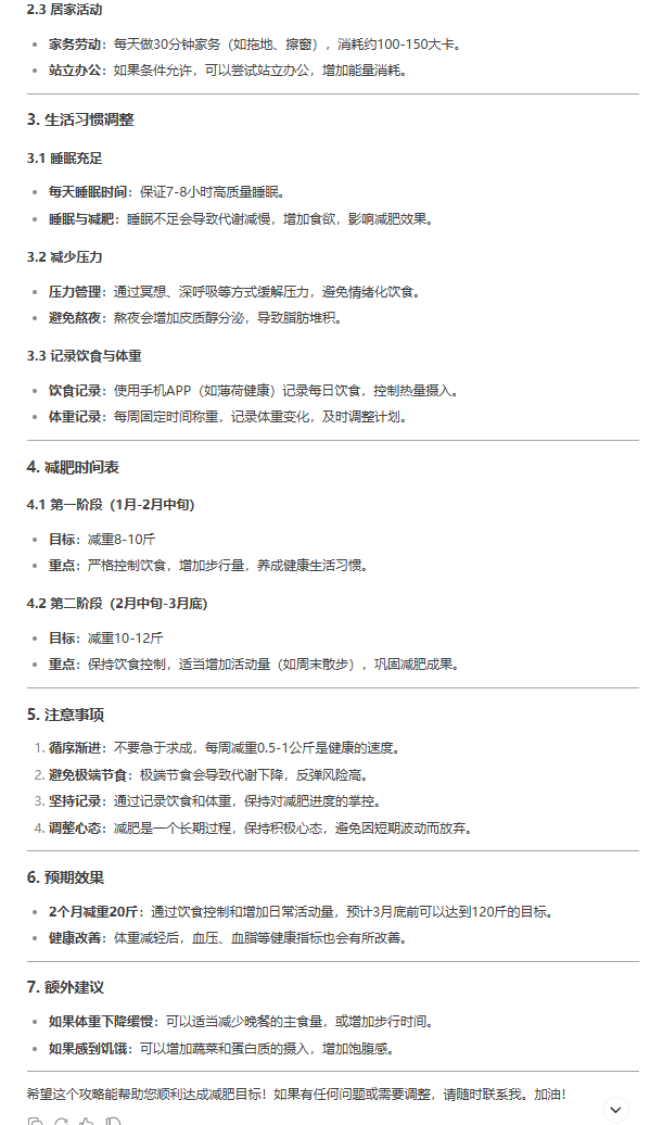 我是曾英杰,男,40 歲,140 斤,我想在 3 月底之前,控制體重到 120 斤。我討厭運 動,家里到公司大概 2 公里。幫我制定一個減肥攻略