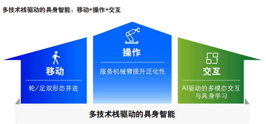 隨著行業(yè)發(fā)展進入深水區(qū) ,單一的技術路線已 無法滿足市場需求。進入行業(yè)下半場需要以更 廣闊的視角審視產業(yè)發(fā)展方向。在構建全棧式 智能生態(tài)的過程中 ,多技術棧的協(xié)同發(fā)展已成 為必然選擇。從技術演進的角度來看 ,當前服 務機器人行業(yè)正處于關鍵轉型期——從單一的自主移動能力向集移動、操作、交互于一體的 多技術棧邁進。可以預見 ,在多技術棧的驅動下 ,以多模態(tài)感知、 自主決策、靈巧操作為核心特征的具身智能 ,將成為推動全棧式智能生態(tài)發(fā)展的核心驅動力。