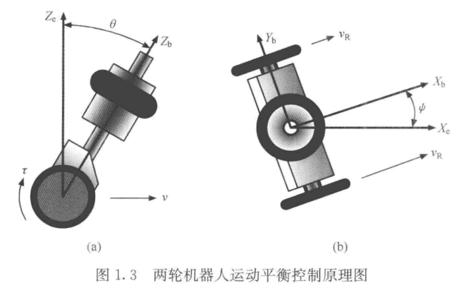 如圖1.3(a) 所示,兩輪機器人的姿態可以通過調節左輪和(或)右輪的運動 速度和運動方向來控制。當兩輪機器人姿態傾斜時,可通過左右電機產生控制 力矩zL 和 t 來調節左輪和右輪的運動速度和運動方向,控制左輪和右輪向傾 斜方向和(或)傾斜速度方向運動,使其姿態回復直立平衡狀態。
