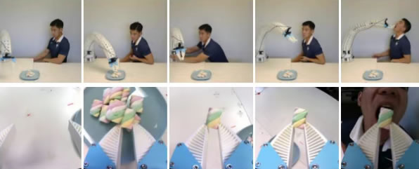 極限人機交互測試(喂棉花糖):這是本文的安全高光時刻。如圖 8 所示,團隊讓 VLA 模型控制軟體機器人執行極高風險的“給人類嘴里喂棉花糖”任務。在執行過程中,由于人類頭部的微小晃動,VLA 模型偶爾會產生位置預估偏差。