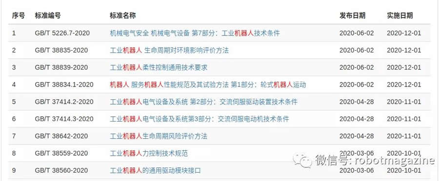 共發(fā)布9條機(jī)器人L域國家推薦標(biāo)準(zhǔn)。
