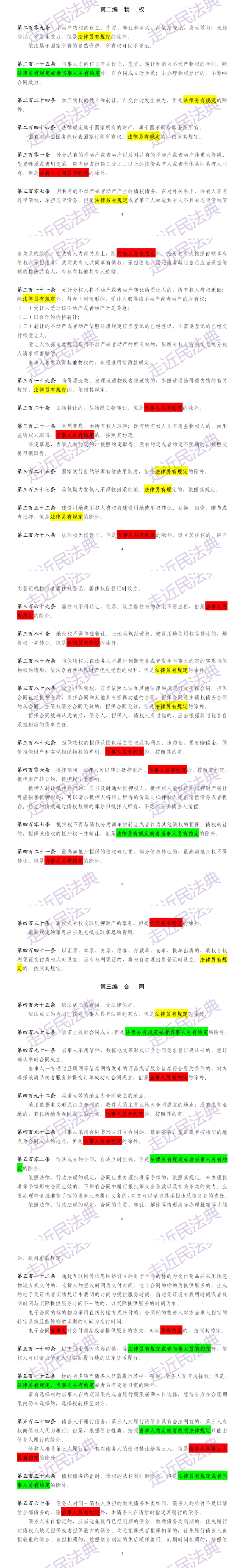我們應(yīng)當(dāng)注意到,《民法典》之外,還有大量的民法規(guī)范與制度沒有寫進(jìn)來,甚至其他非民事法律中也涉及了民事法律內(nèi)容,這也導(dǎo)致了在《民法典》中,有很多“法律另有規(guī)定除外”條款的存在。此外,基于民法基本原則之一的“意思自治原則”,《民法典》尤其合同編中有很多“當(dāng)事人另有約定的除外”條款。當(dāng)然,也存在二者并存的即“法律另有規(guī)定或當(dāng)事人另有約定除外”的條款。