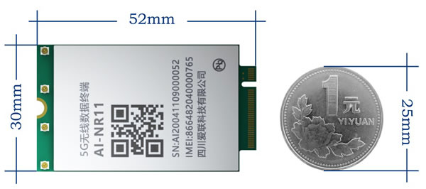 AI-NR11 5G模組采用標準M.2封裝設計,寬度僅比1元硬幣寬5mm,真正做到了和4G模組同尺寸。采用四天線替代八天線,通過天線輪詢SRS功能,智能快速選出優(yōu)天線方案,有效提升上網速率體驗。從一款5G工業(yè)互聯(lián)網模組下線到該模組的成功研發(fā),時間跨度不到5個月。