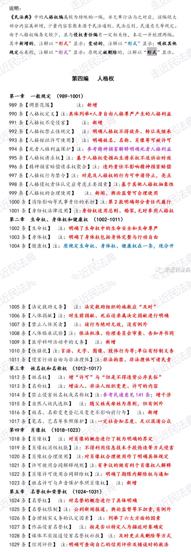 一方面在于人格權(quán)編(51條)、侵權(quán)責(zé)任編(95條)條文數(shù)量不多,另一方面在于人格權(quán)編與侵權(quán)責(zé)任編本身也屬關(guān)聯(lián)性較強(qiáng)的兩編。為此,我們一并梳理、推送。兩編條文數(shù)量雖不多,但重要新增與調(diào)整完善卻不少,尤其單獨(dú)成編的人格權(quán)編,新增內(nèi)容較多,引發(fā)廣泛關(guān)注