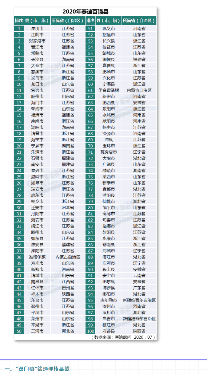 2020年7月28日,由賽迪顧問縣域經(jīng)濟研究中心編制的《2020中國縣域經(jīng)濟百強研究》正式發(fā)布。該研究聚焦新時代縣域G質量發(fā)展的新動力、新機制,多面解讀了縣域百強的區(qū)域格局和發(fā)展特征。