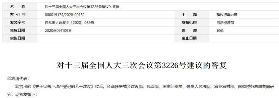 此外,答復(fù)就“關(guān)于不動產(chǎn)共有登記”等問題也做了明確回復(fù)。答復(fù)指出,不動產(chǎn)登記機構(gòu)以少數(shù)份額共有人不配合而不予辦理登記的問題,屬于執(zhí)行層面的問題,將加強監(jiān)督指導(dǎo),嚴格落實法律規(guī)定,切實維護不動產(chǎn)權(quán)利人合法權(quán)益。