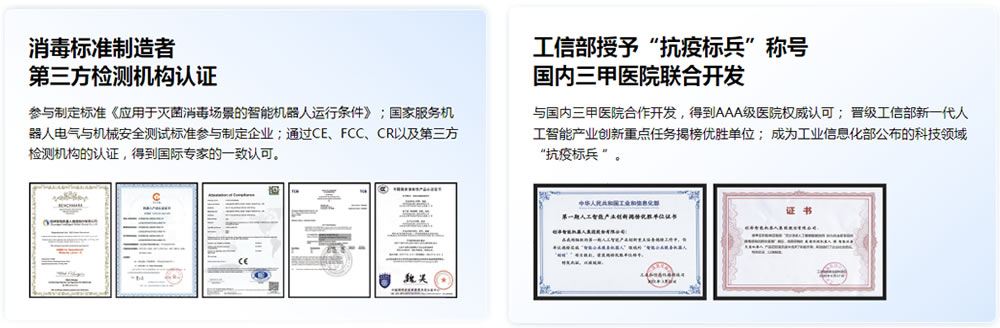3月在疫情來臨時(shí),創(chuàng)澤集團(tuán)智能滅菌消毒機(jī)器人在D一時(shí)間奔赴一線上崗,以“AI防疫力量”助力多個(gè)醫(yī)療機(jī)構(gòu)實(shí)現(xiàn)“科技抗疫”。尤其在急診、發(fā)熱門診、隔離病房、人員密集公共場所等有效地減少了人與人之間的交叉感染,降低了病毒傳播的風(fēng)險(xiǎn),用AI技術(shù)服務(wù)守護(hù)百姓的健康。6月工業(yè)和信息化部公布了在科技支撐抗擊新G肺炎疫情中表現(xiàn)突出的人工智能企業(yè)名單,創(chuàng)澤集團(tuán)榜上有名,彰顯了“智能消毒滅菌機(jī)器人”在抗疫防疫中發(fā)揮了積J作用;7月創(chuàng)澤集團(tuán)“智能消毒滅菌機(jī)器人”榮獲麒麟杯《2020年度受用戶喜愛的抗疫機(jī)器人》稱號(hào);9月消毒機(jī)器人實(shí)地運(yùn)用某軍事演習(xí)行動(dòng);11月由創(chuàng)澤集團(tuán)牽頭起草的全國《應(yīng)用于滅菌消毒場景的智能機(jī)器人運(yùn)行條件》標(biāo)準(zhǔn)正式發(fā)布;此前智能消毒滅菌機(jī)器人已多次亮相各大峰會(huì)論壇,更獲得工信部、新華社等權(quán)威機(jī)構(gòu)表彰和報(bào)道。