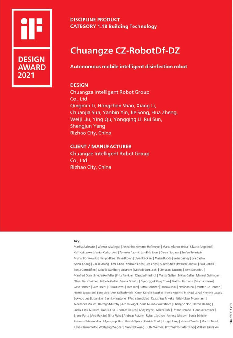 “好的設(shè)計(jì)賦予產(chǎn)品靈魂”。今年iF設(shè)計(jì)獎(jiǎng)共有來(lái)自52個(gè)國(guó)家的近10000件作品參賽,評(píng)選過(guò)程競(jìng)爭(zhēng)十分激烈,入選2021年iF設(shè)計(jì)獎(jiǎng)的移動(dòng)式消毒機(jī)器人企業(yè)共有兩家:中國(guó)的創(chuàng)澤集團(tuán)和丹麥的Blue Ocean Robotics。創(chuàng)澤集團(tuán)榮獲此次獎(jiǎng)項(xiàng)表明其創(chuàng)新產(chǎn)品設(shè)計(jì)和品質(zhì)獲得了國(guó)際認(rèn)可,也是對(duì)創(chuàng)澤集團(tuán)AI應(yīng)用創(chuàng)新引L力的肯定。 未來(lái),創(chuàng)澤集團(tuán)將繼續(xù)深耕探索,以前瞻設(shè)計(jì)理念、出色產(chǎn)品引L行業(yè)發(fā)展!