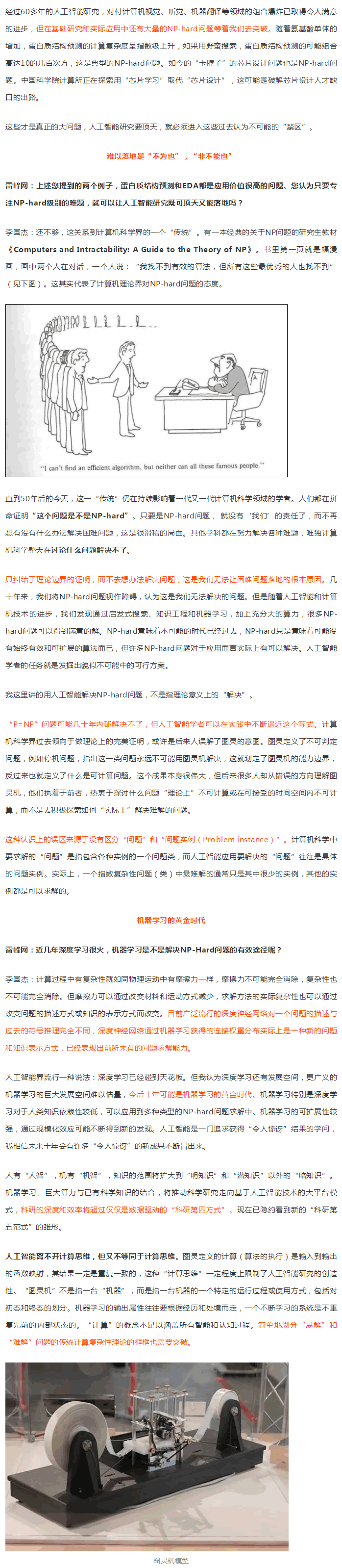 學(xué)術(shù)界的人工智能研究過分局限于約翰·麥肯錫的定義,也就是人工智能的目標(biāo)是“像人”,并指出我們應(yīng)該突破對智能的狹義理解。這與AI要解決NP-hard級別難題有什么聯(lián)系?