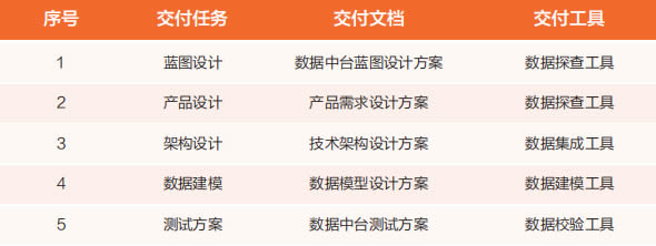 方案設(shè)計環(huán)節(jié)基于需求調(diào)研環(huán)節(jié)的交付文檔和交付前置環(huán)節(jié)的項目交付工作說明書文檔,完成數(shù)據(jù)中臺業(yè)務(wù)藍(lán)圖設(shè)計、數(shù)據(jù)產(chǎn)品設(shè)計、架構(gòu)設(shè)計、數(shù)據(jù)模型設(shè)計及測試方案設(shè)計,為開發(fā)實施提供輸入。方案設(shè)計環(huán)節(jié)的交付任務(wù)包括藍(lán)圖設(shè)計,產(chǎn)品設(shè)計、架構(gòu)設(shè)計、數(shù)據(jù)建模和測試方案。