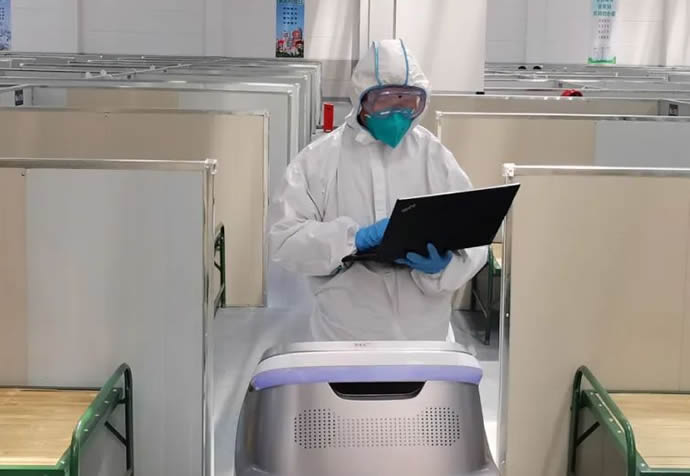近日,多款機器人進入上海世博方艙醫院,為新G病毒感染者提供服務。消毒機器人在世博展覽館里邊運行邊噴灑霧化消毒劑;智能配送機器人為多個單元送餐、送藥;人形機器人則負責為人們帶路,還能隨音樂翩翩起舞,給患者和“大白”帶來快樂。