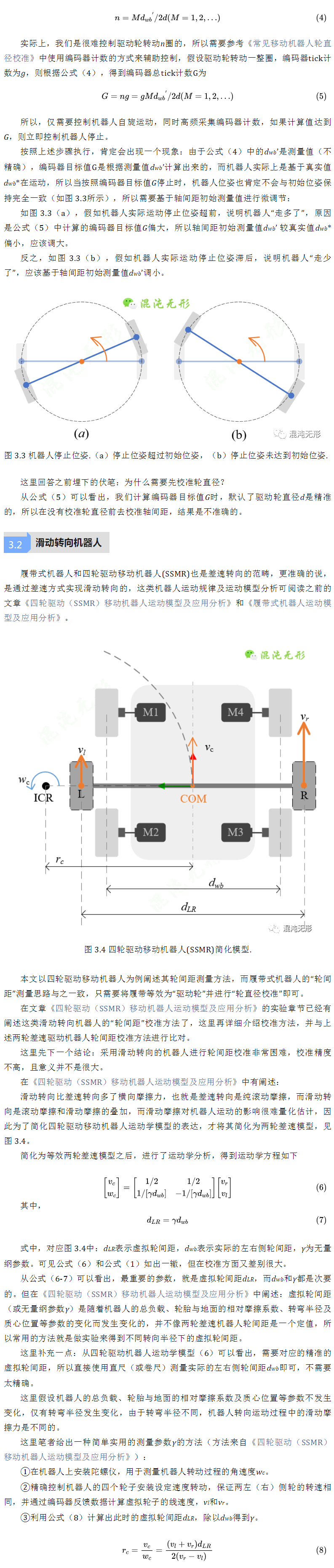 輪式機(jī)器人底盤原理圖將四輪驅(qū)動(dòng)移動(dòng)機(jī)器人的運(yùn)動(dòng)模型簡(jiǎn)化等效處理為兩輪差速驅(qū)動(dòng)機(jī)器人的運(yùn)動(dòng)模型,分析了SSMR獨(dú)有的運(yùn)動(dòng)特性