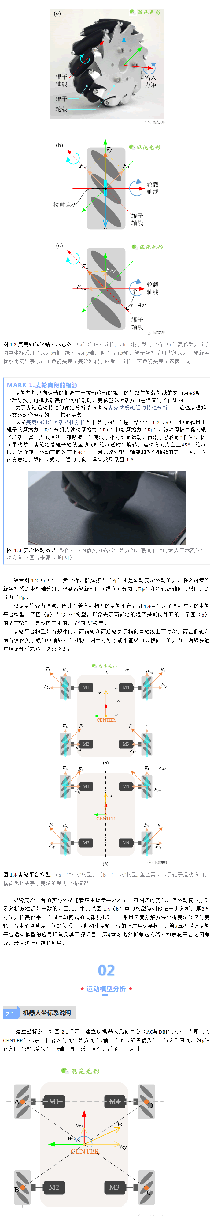 從運(yùn)動(dòng)空間分類,輪式移動(dòng)機(jī)器人可分為非全向移動(dòng)類型和全向移動(dòng)類型。在之前的系列文章中已經(jīng)介紹了兩輪差速機(jī)器人、car-like robot、四輪驅(qū)動(dòng)(SSMR)機(jī)器人及履帶式機(jī)器人,這都屬于非全向(差速驅(qū)動(dòng))移動(dòng)機(jī)器人的范疇,而本文將介紹全向移動(dòng)機(jī)器人中的一款——基于麥克納姆輪的全向移動(dòng)機(jī)器人(下文簡稱為麥輪平臺(tái))。