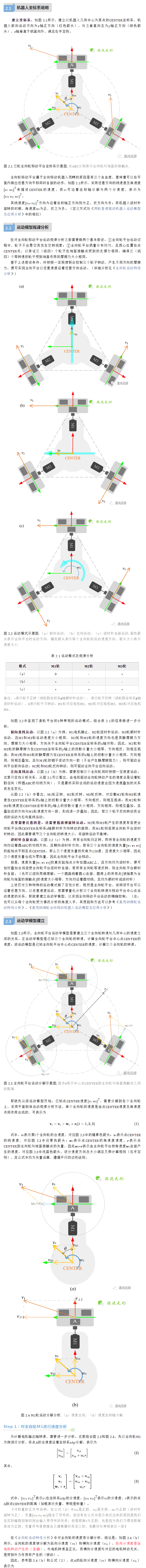 全向輪移動平臺因其機(jī)動、靈活的特點(diǎn)而備受關(guān)注,本文深入分析全向輪的運(yùn)動機(jī)理及其全向輪平臺運(yùn)動過程中的受力和速度情況,先后分析全向輪平臺的3種運(yùn)動模式及其內(nèi)在運(yùn)動規(guī)律;并采用速度分解的方法,詳細(xì)分析了電機(jī)轉(zhuǎn)速-全向輪實(shí)際運(yùn)動速度-全向輪平臺中心點(diǎn)速度之間的關(guān)系,給出完整的物理分析及數(shù)學(xué)推導(dǎo)過程,構(gòu)建全向輪平臺的運(yùn)動學(xué)模型;后從速度空間、運(yùn)動效率等方面分析全向輪平臺的適用場景。
