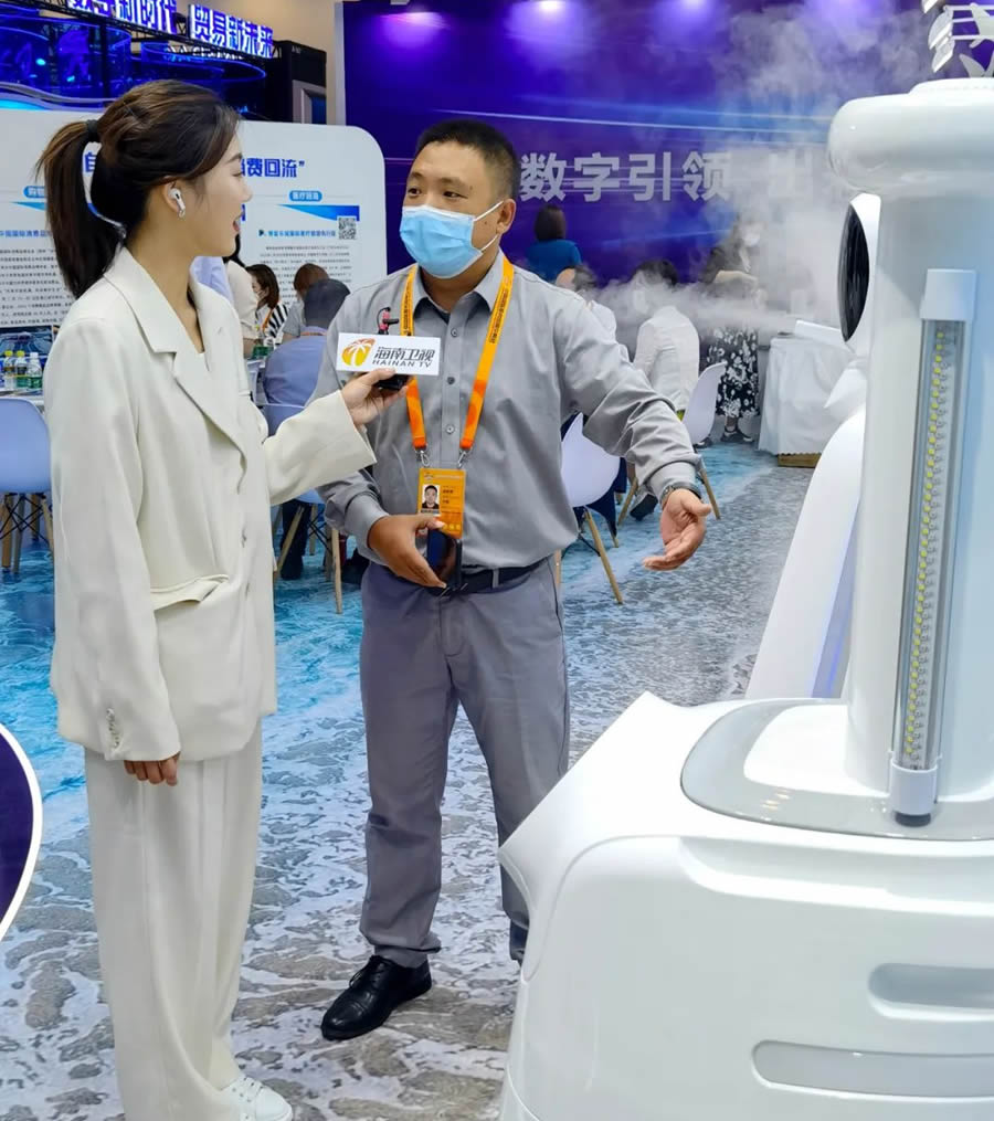 在展會上,一款頭D噴霧在人群中來回穿梭的智能消毒機器人是創澤集團的“明星”產品,你可不要被它“呆萌”的外表欺騙,它擁有超干霧化消毒技能,可以深入空間難觸及的細微縫隙,在進行精細化噴灑的同時,還能對空氣和物品表層深度消殺,能夠根據設定的地點或者路線進行自動、G效、準確的消毒滅菌作業,可以7*24小時全年無休。廣泛應用于醫院、寫字樓、政務及學校等場所的日常消毒工作,實時維護環境安全。