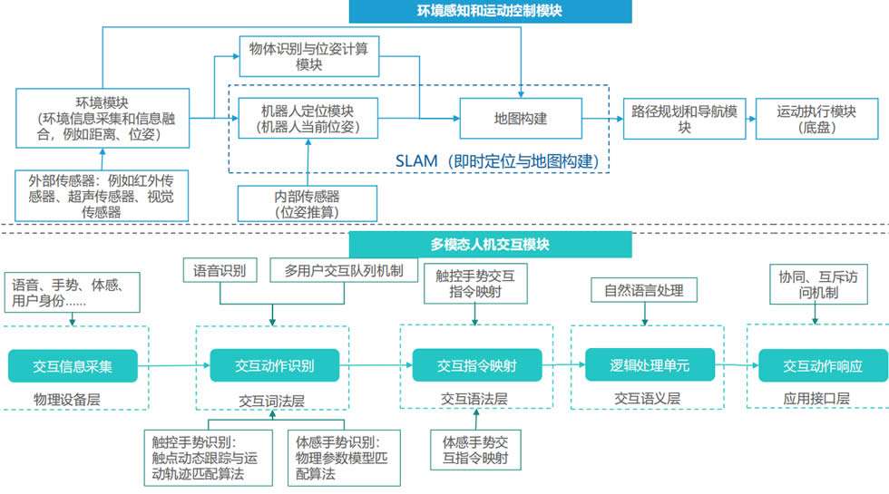環(huán)境感知與導(dǎo)航是指機(jī)器人通過傳感器獲取外界環(huán)境及自身信息;運(yùn)動(dòng)控制器是服務(wù)機(jī)器人行動(dòng)的執(zhí)行者;人機(jī)交互技術(shù)是實(shí)現(xiàn)服務(wù)機(jī)器 人與人溝通的橋梁
