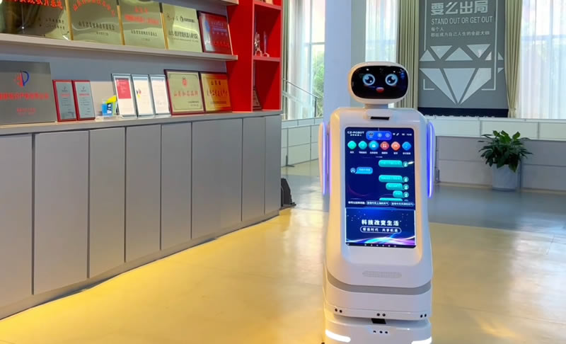 機器人配合3D視覺,看到來訪人員會主動打招呼,啟動智能迎賓;由自身攜帶的蓄電池,實現(xiàn)識別和躲避障礙物自主行走;語音講解,輔以圖片、視頻等補充介紹,使內(nèi)容更生動。