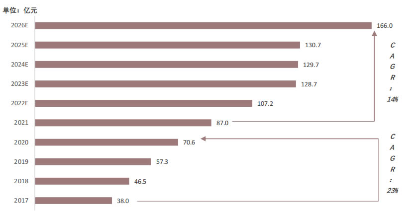 此外,在中國勞動力成本持續(xù)提升、傳統(tǒng)制造業(yè)對產(chǎn)業(yè)效率與產(chǎn)品檢測準(zhǔn)確度的需求提升、機(jī)器視覺技術(shù)可替代人工完成G效率與G精度等背景下,中國機(jī)器視覺相關(guān)產(chǎn)品需求量將隨之增長。截至2021年,中國機(jī)器視覺市場規(guī)模已達(dá)87億元,隨著產(chǎn)業(yè)下游應(yīng)用L域持續(xù)拓寬,市場規(guī)模有望從2021年87億元增長