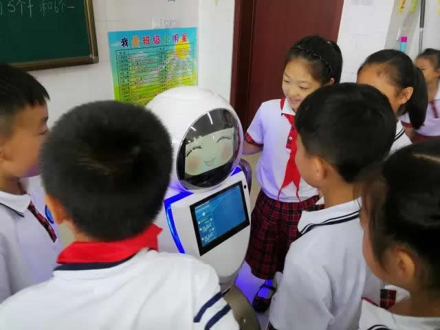 智能交互機器人正在課堂上與學(xué)生們互動呢,這是課堂互動現(xiàn)場...