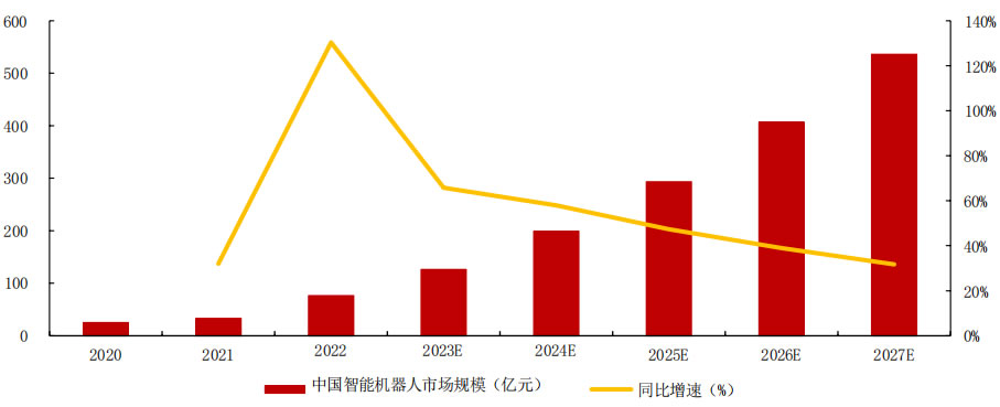 注:智能機(jī)器人指結(jié)合AI算法、具備自主學(xué)習(xí)能力和環(huán)境特征適應(yīng)性的機(jī)器人產(chǎn)品,包含應(yīng)用于工業(yè)、物流、服務(wù)等行業(yè)的商用機(jī)器人,不含家用機(jī)器人
