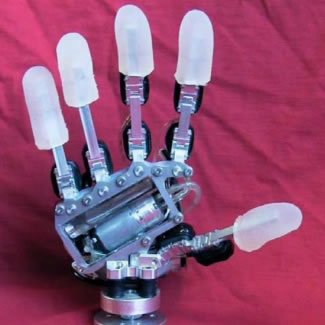 這種氣壓驅動的仿生靈巧手存在兩方面不足:(1)由于氣壓的控制相對較難導致靈巧手運 動過程中會出現(xiàn)不平穩(wěn)的情況;(2)氣壓驅動的相關驅動元件體積較大,不便于實現(xiàn)機械 和驅動單元的集成化設計。